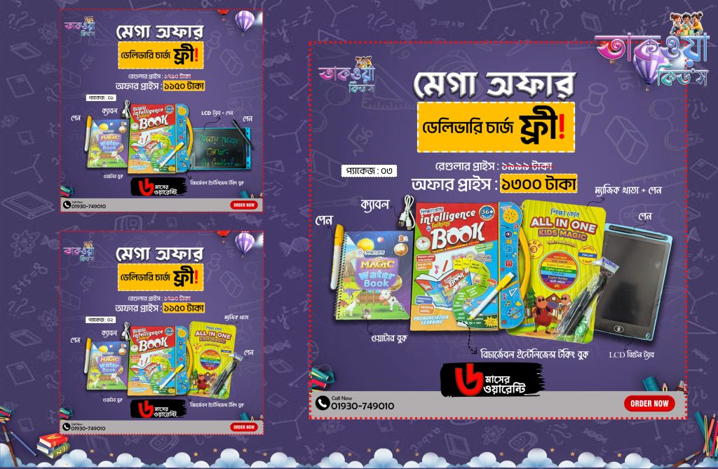 অর্ডার করলে পাচ্ছেন ফ্রি হোম ডেলিভারি সহ একটি LCD Writing TAB অথবা ম্যাজিক্যাল বুক, ম্যাজিক্যাল বুক এর সাথে পেয়ে যাবেন ফ্রি কলম!